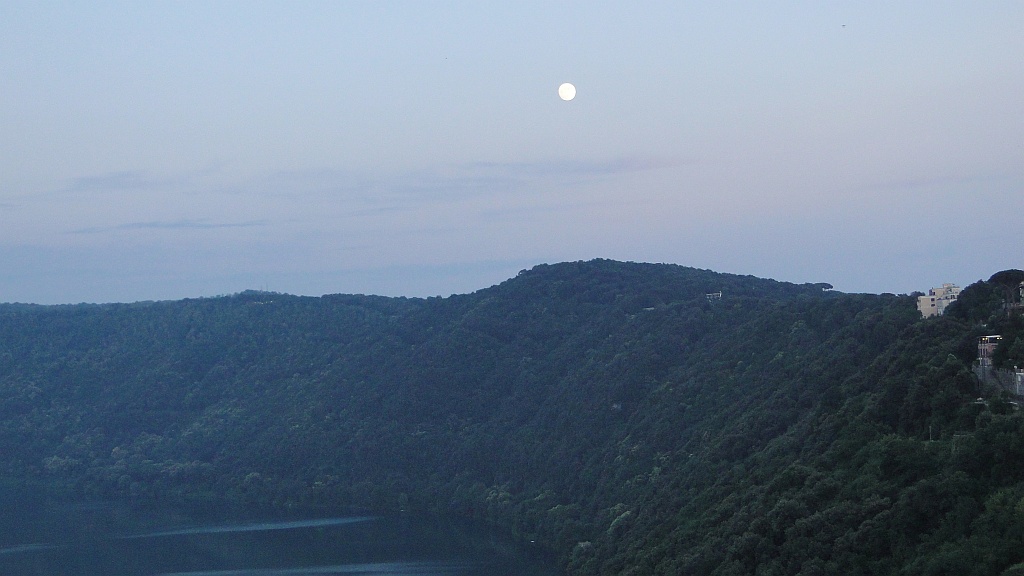 Abendstimmung mit 98.6%-Mond am 14.06.2011 am Lago Albano.