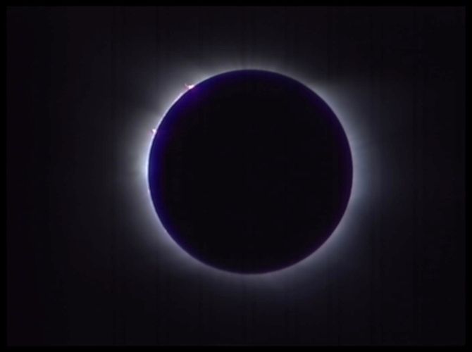 die innere Korona und Protuberanzen zum Beginn der Totalität